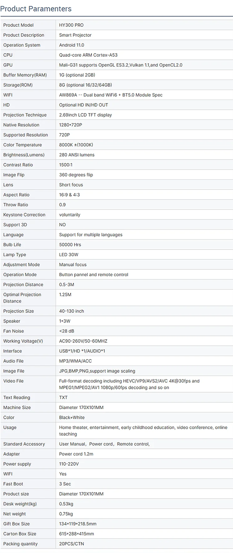 model number: HY300PRO